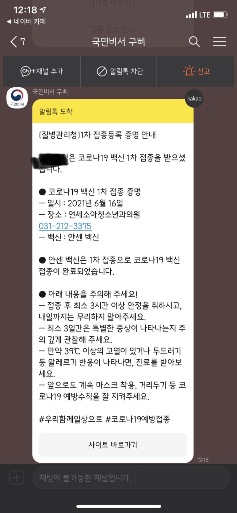 오늘은 2021년 6월 16일 얀센 백신 맞은 후기 입니다.