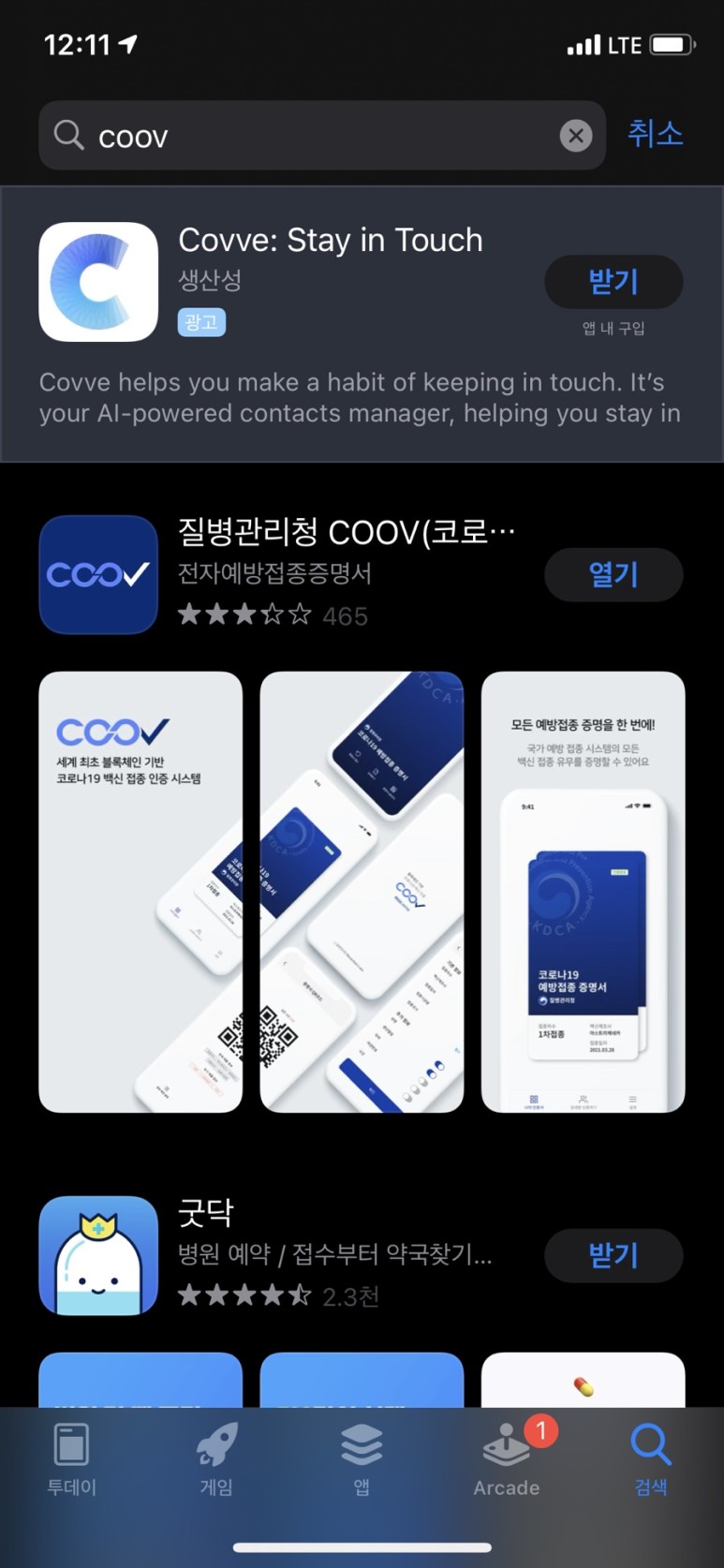 추가적으로 Coov 어플을 받고 본인 인증하면 QR코드 및 접종완료 인증 가능하다.