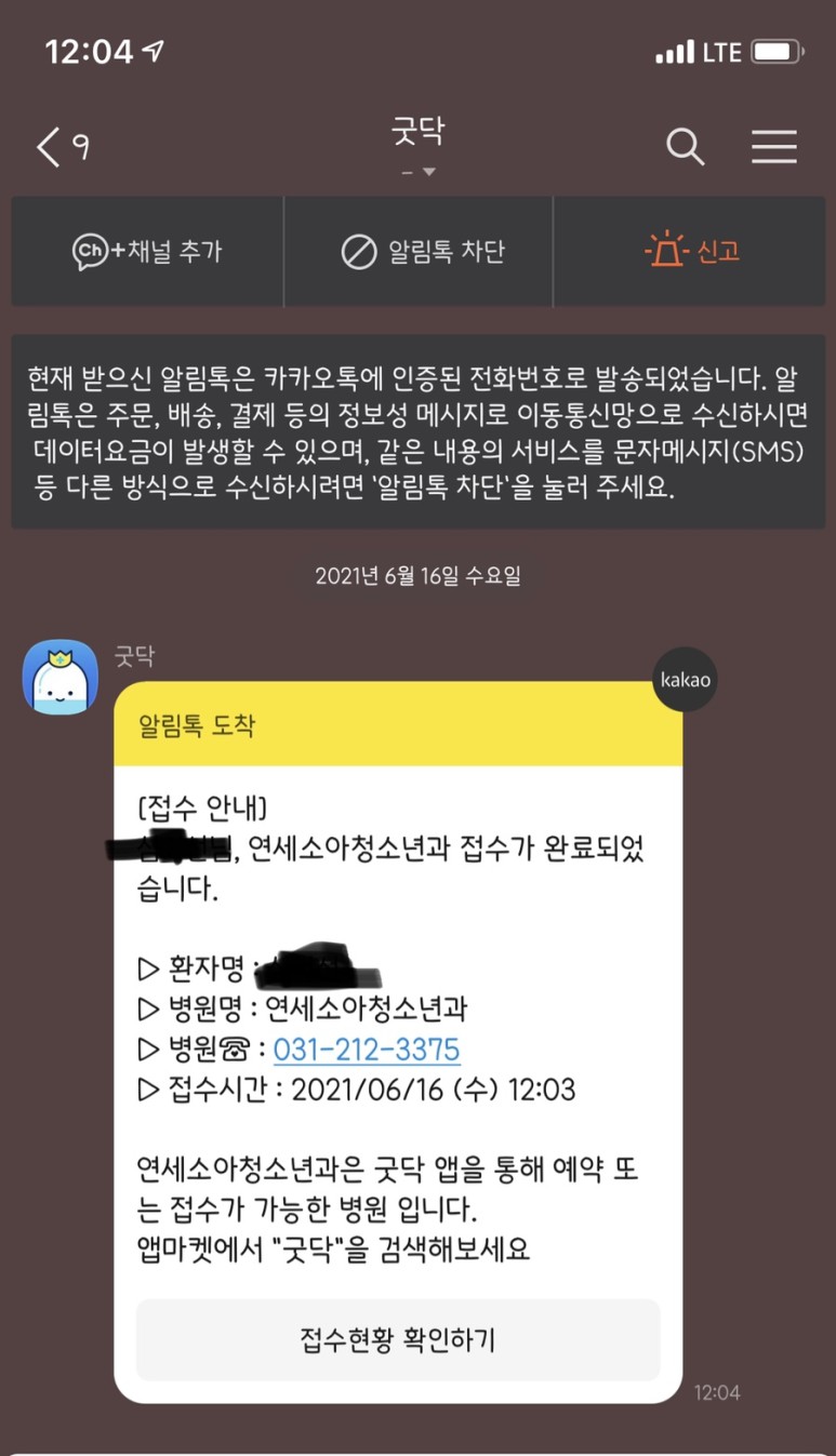 12:03분경 카톡 도착
