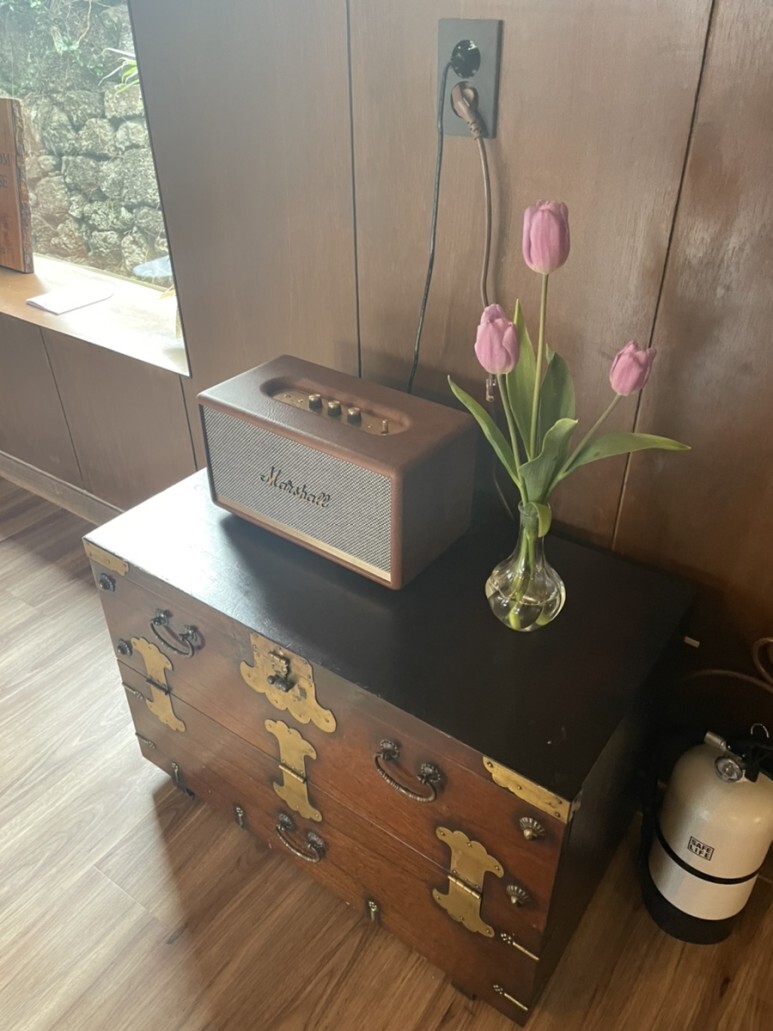마샬 블루투스 스피커도 있었지만 저희는 연결이 안 돼서 사용하지 못했다는..ㅠㅠ