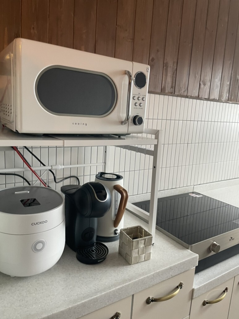 부엌에는 냉장고와 전자레인지, 밥솥 등 취사용품들이 준비되어 있었고 커피캡슐도 있어 아침에 커피를 내려먹었습니다.