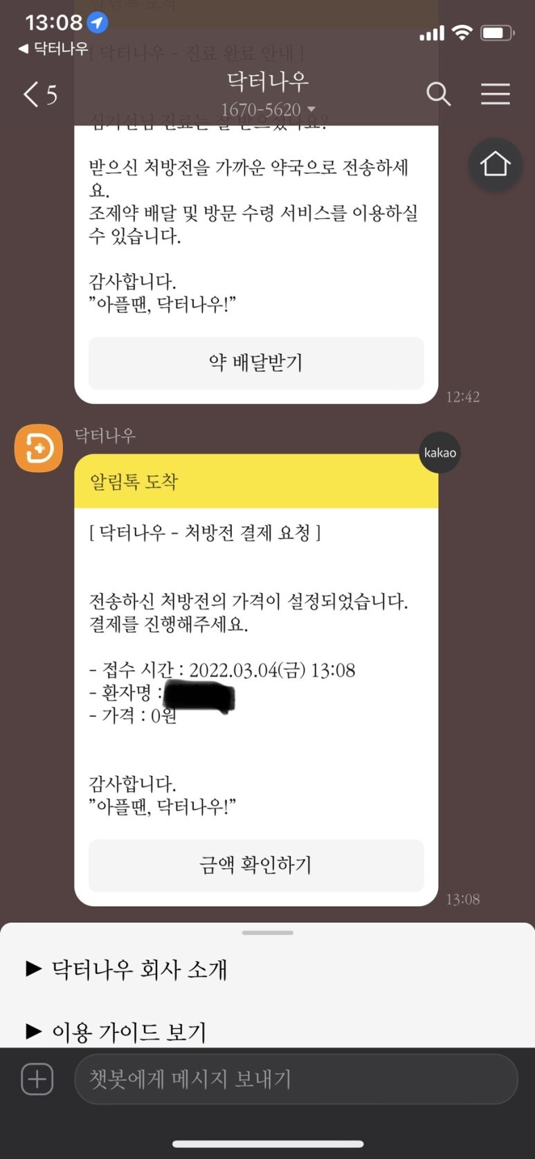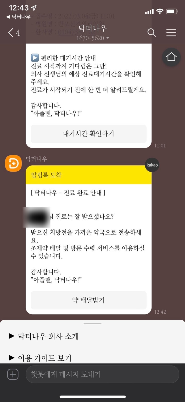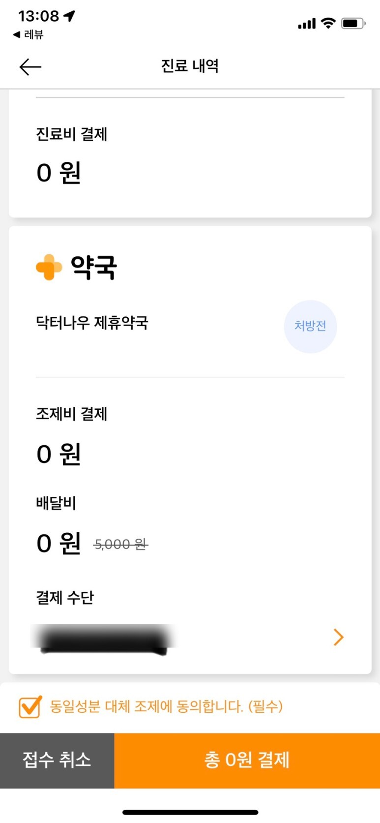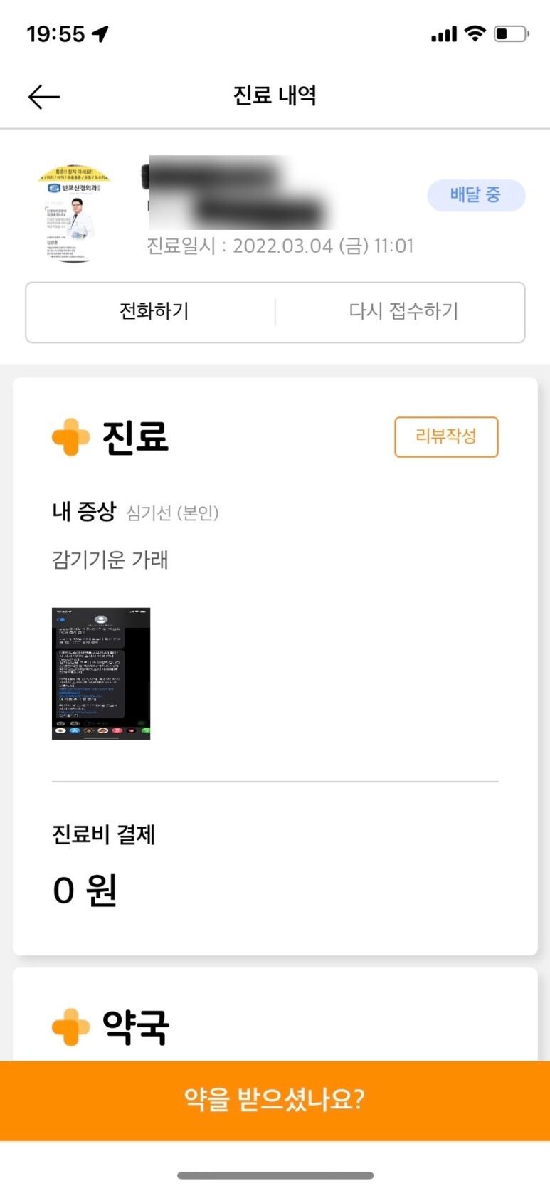 4시간 만에 진료 + 집에 약까지 왔습니다.