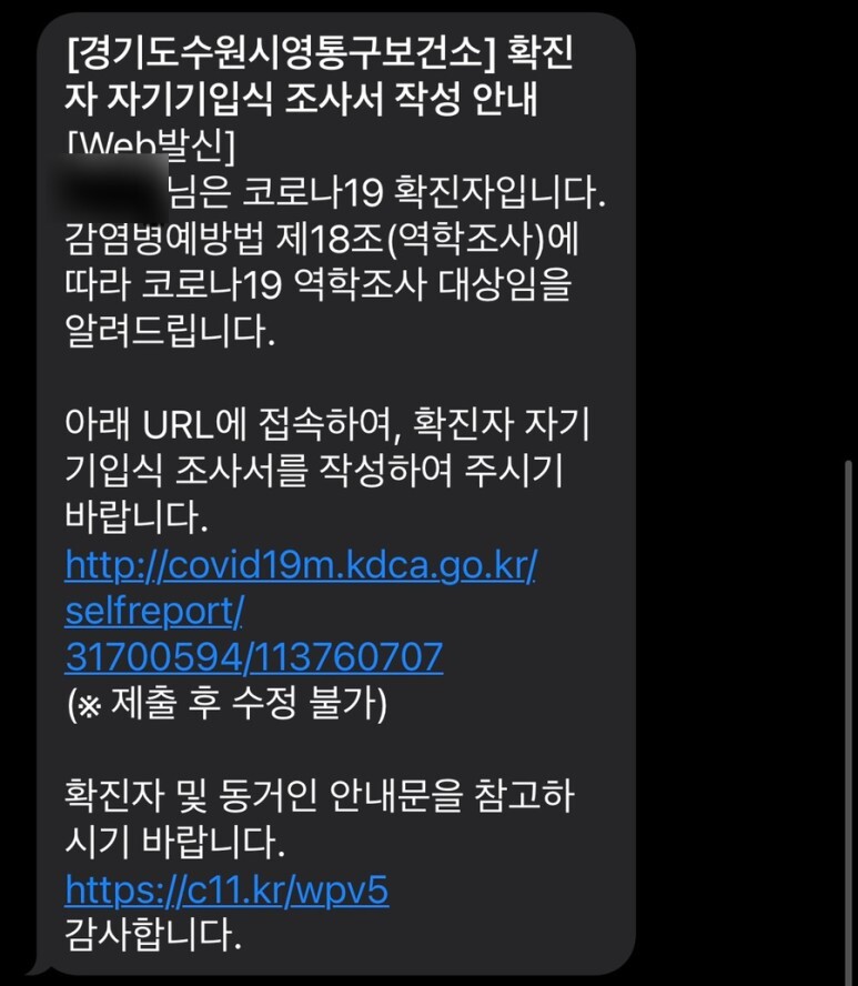 친구가 확진자라 문자 보여주고 동거인이라고 말하고 받았습니다.