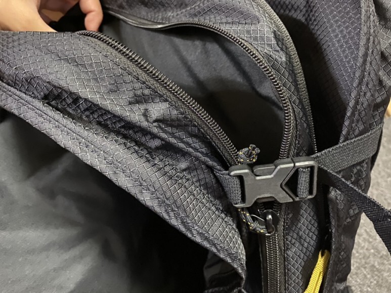 사이즈 조절 가능하고 이 가방은 다른 아웃도어 브랜드랑 약간 다르게 스틱 꽂는 곳은 없습니다.