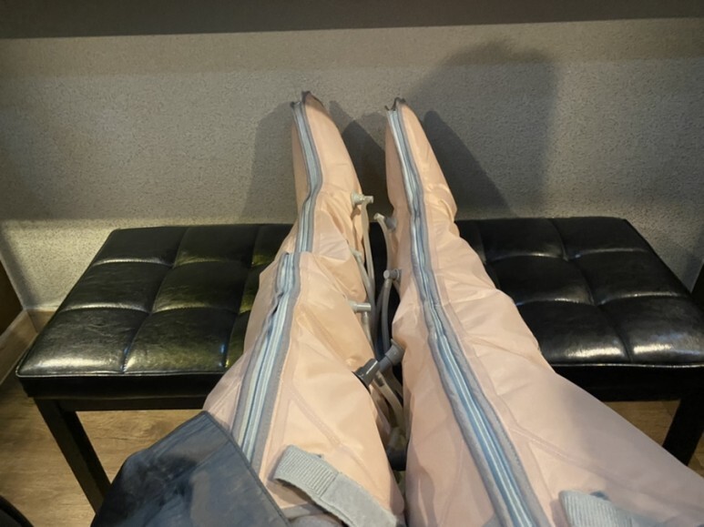 다리에는 다리 붓기 풀리는 공기압 마사지기를 착용해 주셨고
