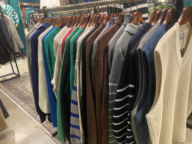 패턴이 다양한 니트, 가디건, 요즘 유행하는 스타일 제품들로 즐비했습니다.