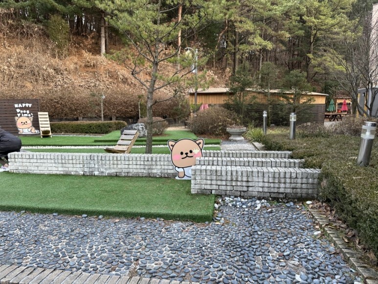 곳곳에서 강아지들 놀 수도 있고 펜션에 사람들이 굉장히 많이 왔습니다...