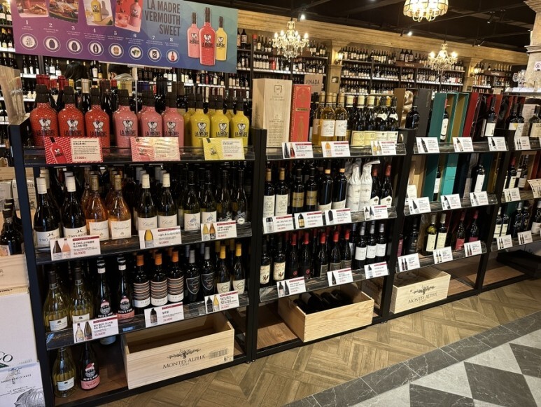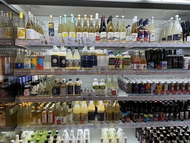 와인, 맥주, 보드카, 사케, 막걸리 등 다양한 제품이 있고 치즈 및 간단하게 곁들일 수 있는 제품도 있었습니다.