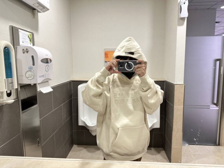 후드 모자 쪽에는 에센셜 로고 있습니다.