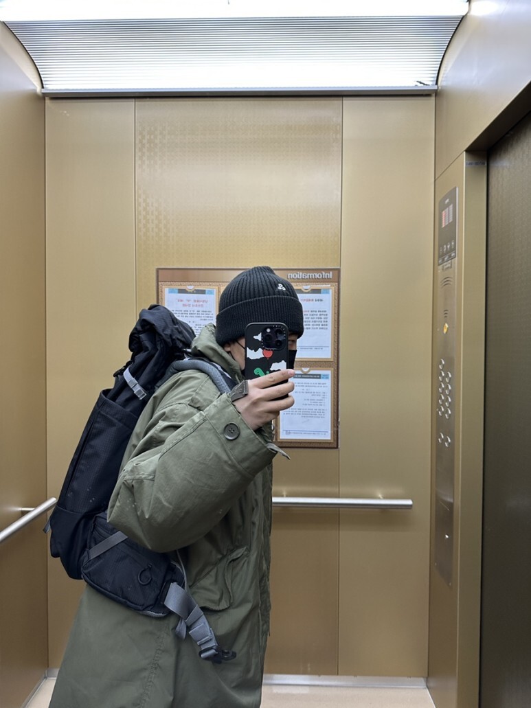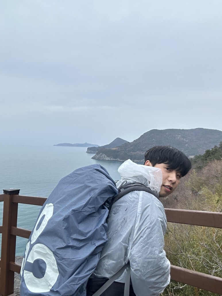 비오는 날이라 ACG 가방 커버 우비까지 착용하고 돌아다녔습니다.