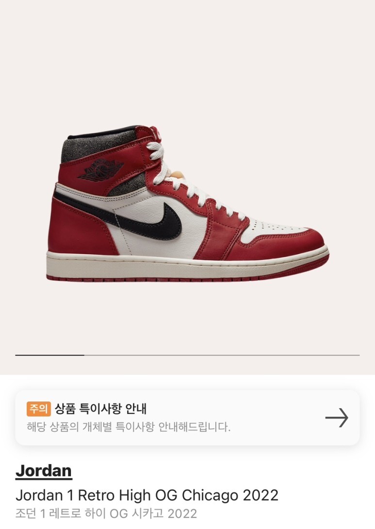 모델 이름 : 조던1 레트로 하이 og 시카고 2022