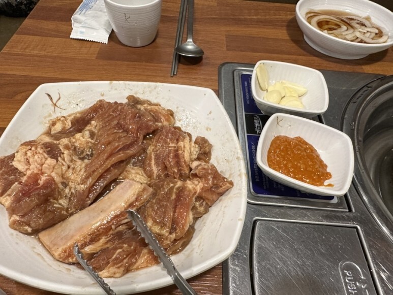 다른 곳보다 사람이 많고 삼겹살 먹으려 했으나? 돼지갈비로 go go