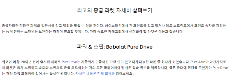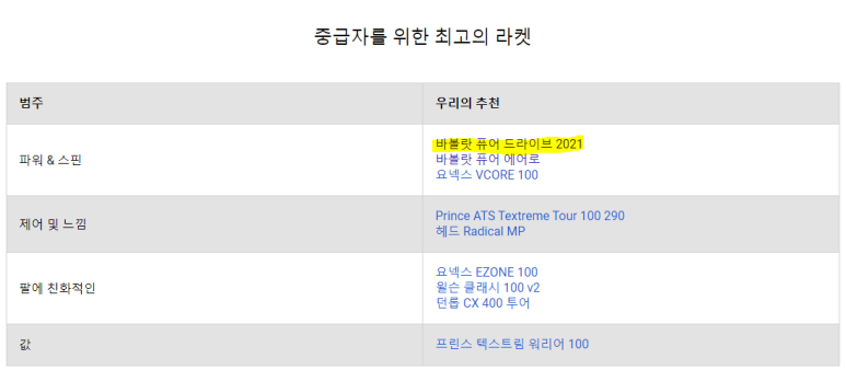 테니스웨어하우스에 들어가면 2024 최고의 라켓으로 되어있고 중급자용 최고의 라켓으로