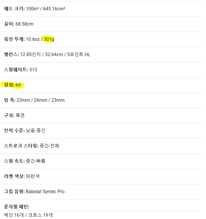 바볼랏 2023 퓨어에어로 팀 : 현재 구매한지 얼마 안되어서 주력으로 사용중 285g
