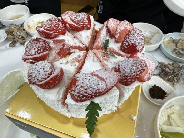 이날은 생일자가 있어서 하얀 풍차에서 사 온 딸기 케이크로 마무리하였습니다.