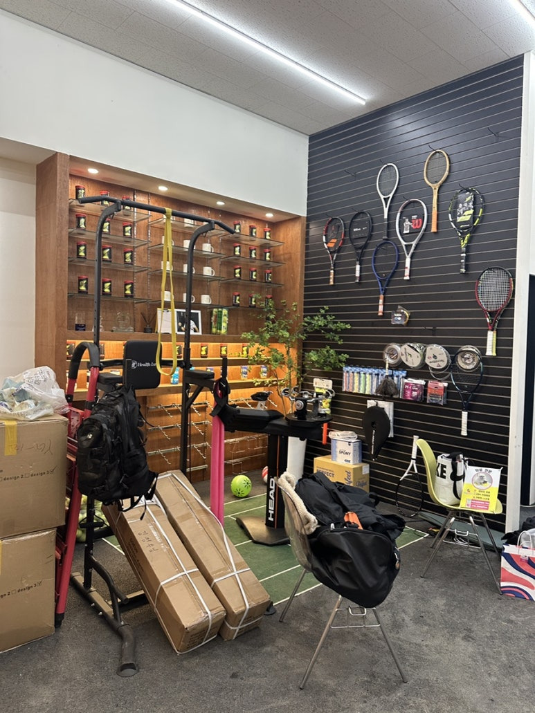 매장 안쪽을 보게되면 화장실도 있고 준비된 라켓도 있습니다.