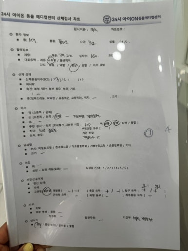 신체검사 진료 차트도 주셨습니다.