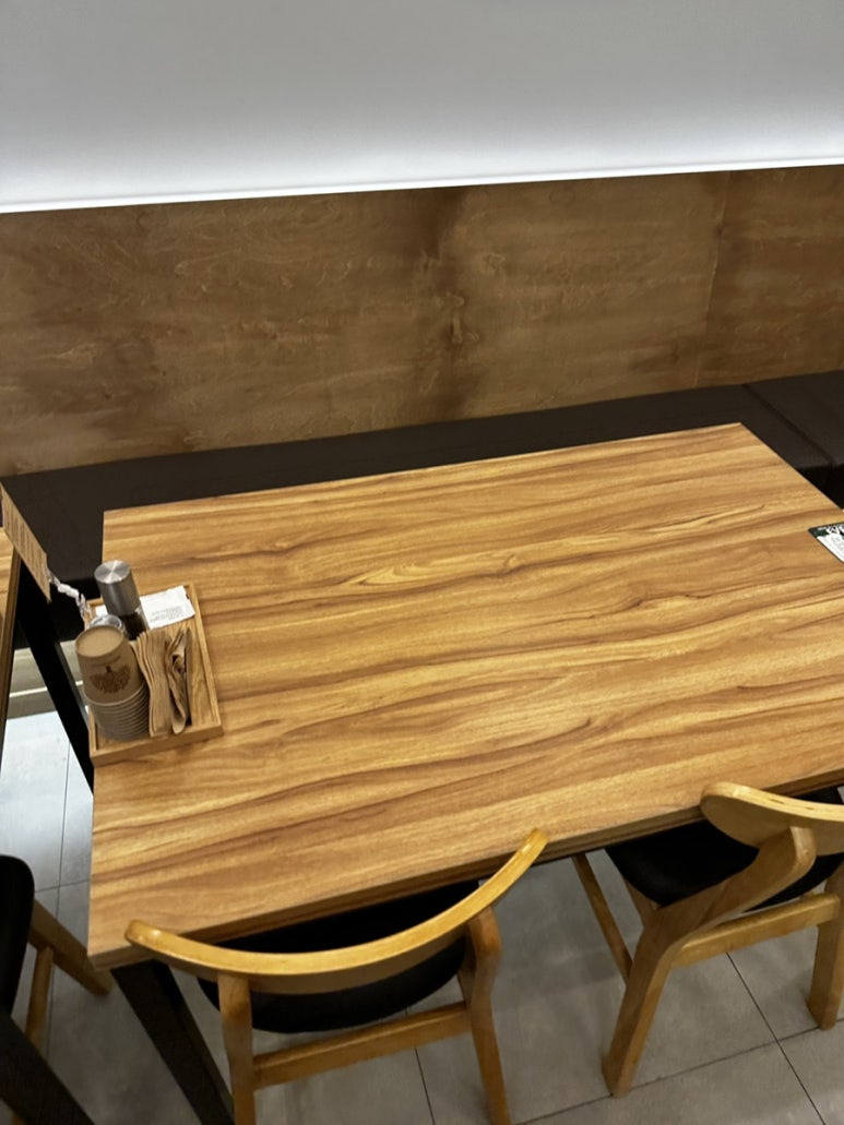 소금 후추 준비되어 있는 테이블입니다.