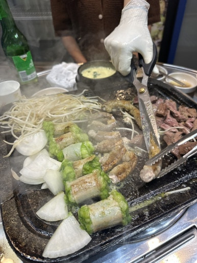 곱창은 양파랑도 먹고 여러 조합으로 먹었습니다.