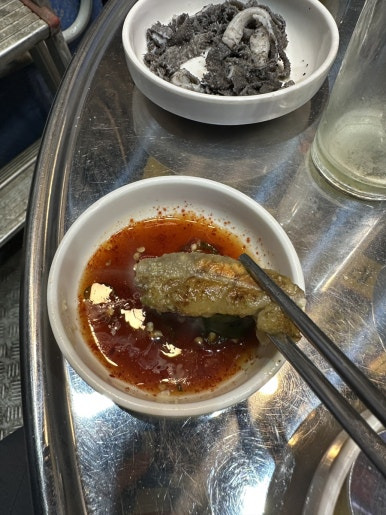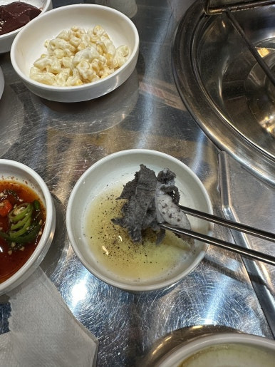 소금장에 찍어서 한입 먹었습니다.