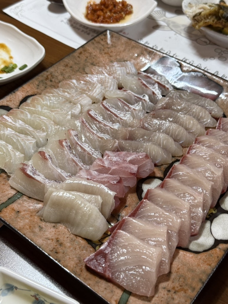 대방어, 민어, 광어, 참돔, 농어, 초밥, 지리탕, 낙지볶음, 제육볶음(요청)