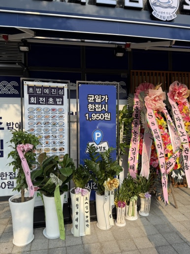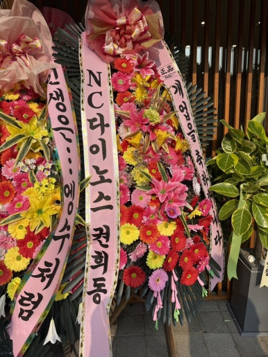 가게 들어가기 전에 새로 오픈해서 그런지 엄청난 야구선수들의 화환이 많았습니다.